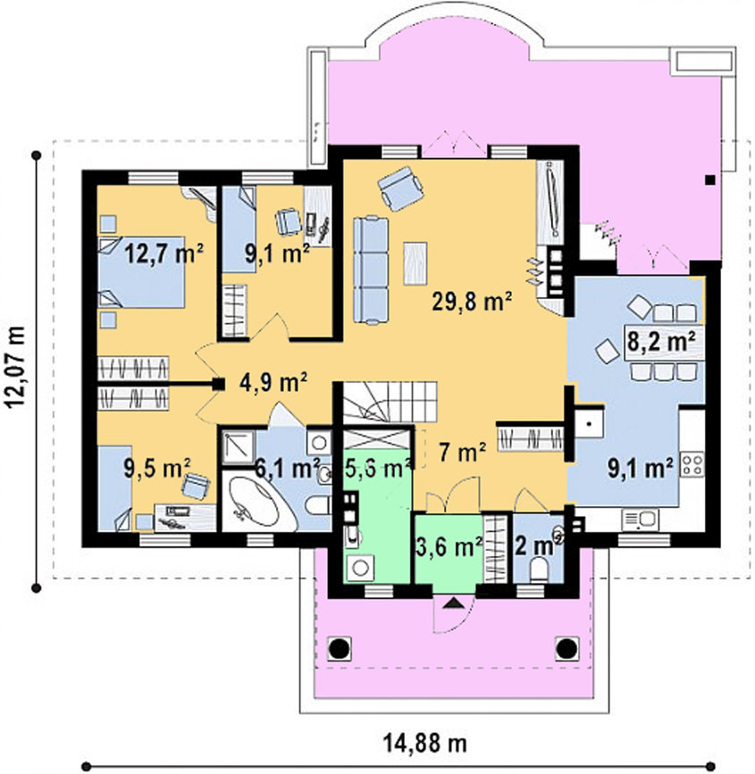 Жилой дом из газобетона «Беседа» 1,940,000 ₽ Одноэтажный классический дом из газобетона «Беседа» украсит любой участок. Три спальни, просторная гостиная и свободное пространство на мансарде устроят самых взыскательных заказчиков.